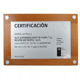 Marco de madera fondo de vidrio y placa con logo aplicado a color 30 x 38