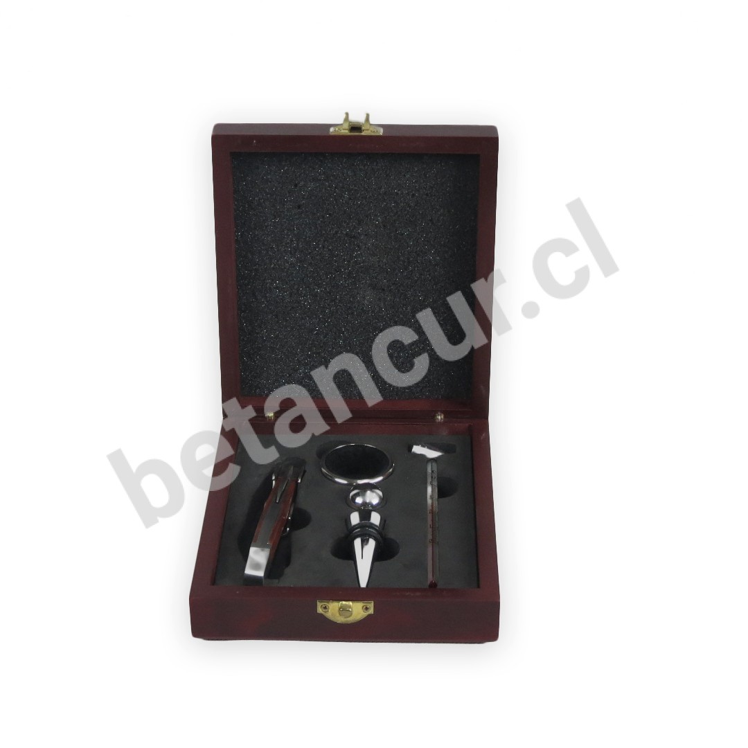 Caja de vino con accesorios