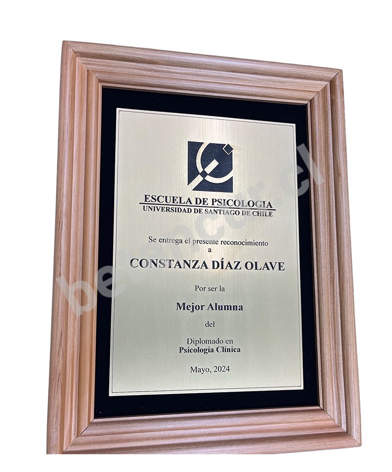 Marco de madera fondo de vidrio y placa metalex dorada 23