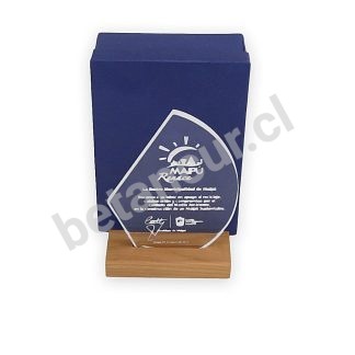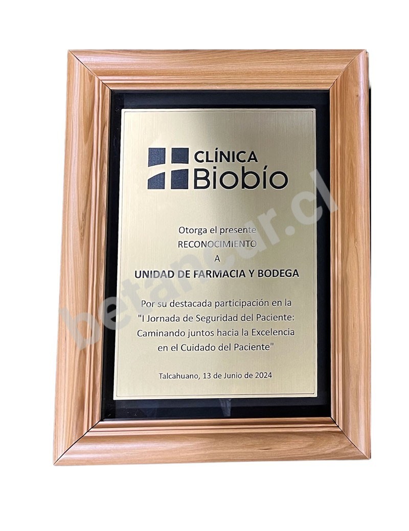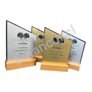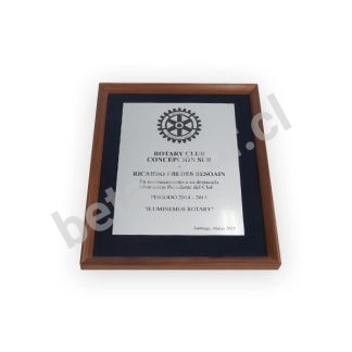 Marco de madera fondo de vidrio y placa metalex dorada 23