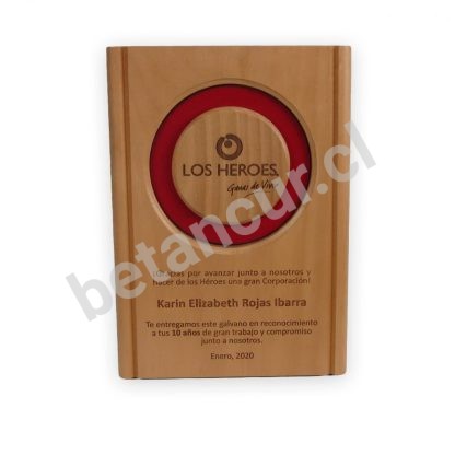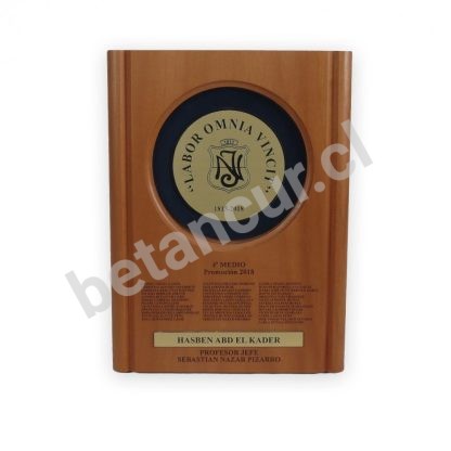 Incluye placa metalex dorada o tablilla de madera con logotipo y texto grabado láser