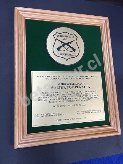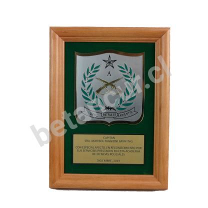 Reconocimiento marco de madera fondo terciopelo 23V