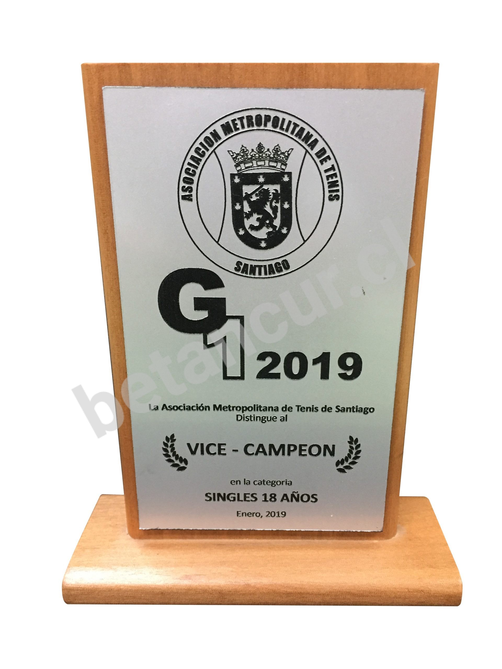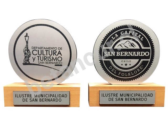 Con aplicación de placa metalex con logotipo y texto grabado láser
