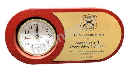 • Con reloj bronce embutido y placa metales con logotipo y texto grabado láser